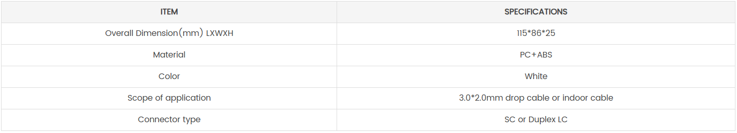 It is able to hold up to 1 subscribers. It is used as a termination point for the drop cable to connect with ONT in FTTH in user’s home.