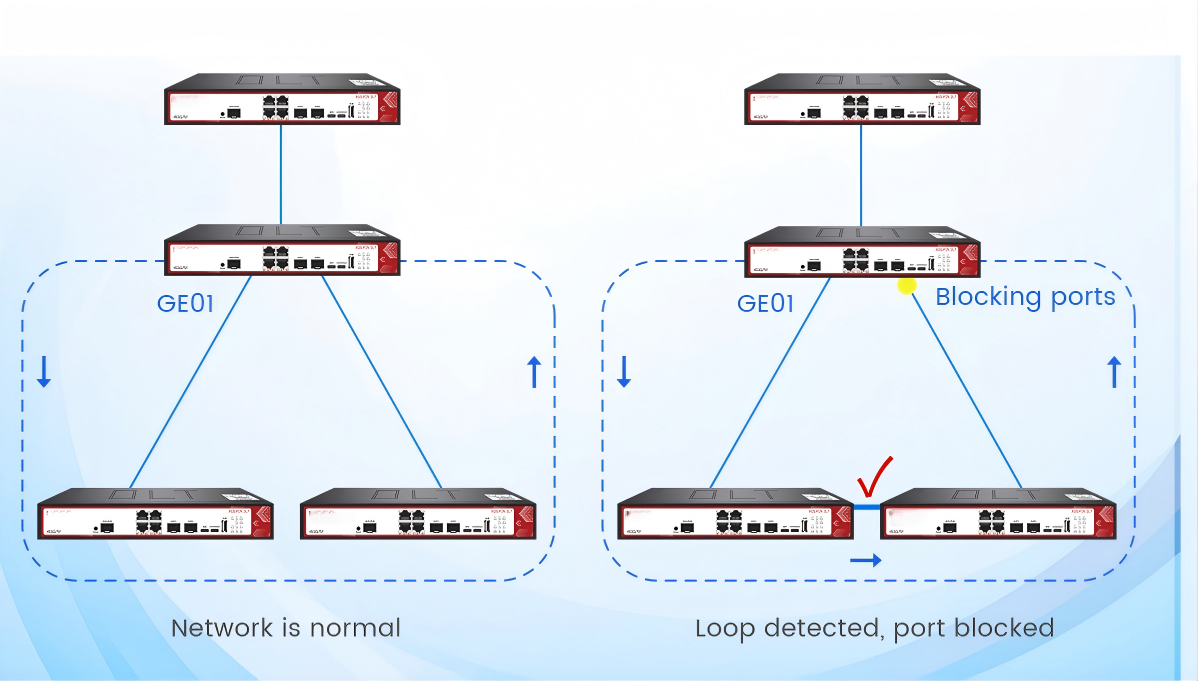 2. When the loop in the network is released, the port automatically returns from a blocked state to a normal state, and the port resumes normal communication.