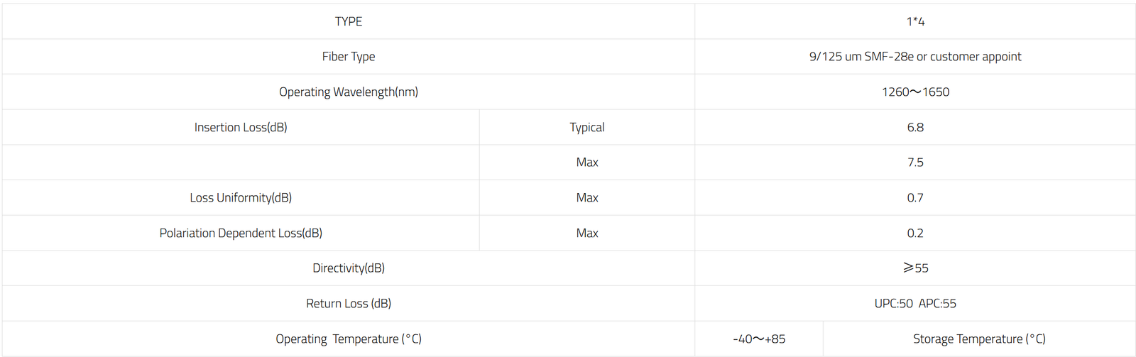 • 1×2,1×4,1×8, 1×16,1×32, 1×64 splits