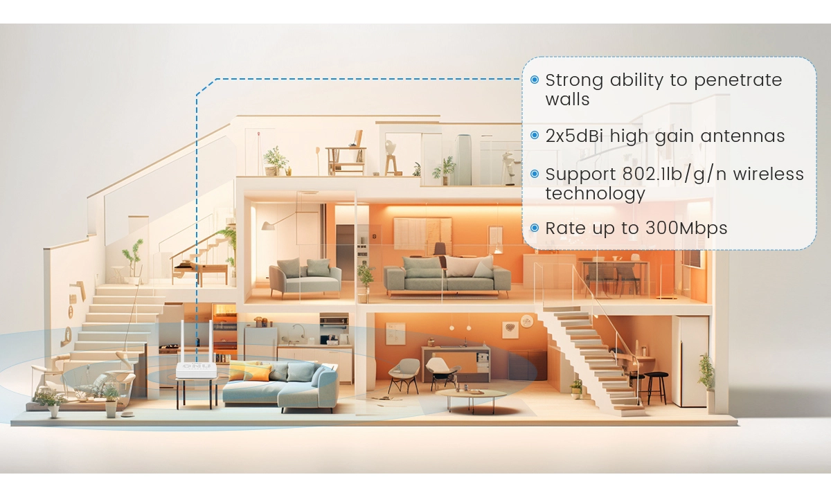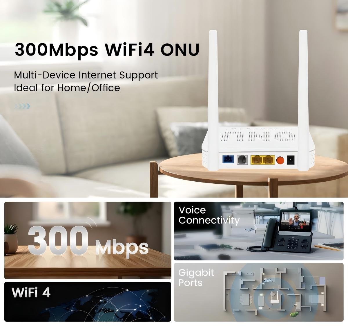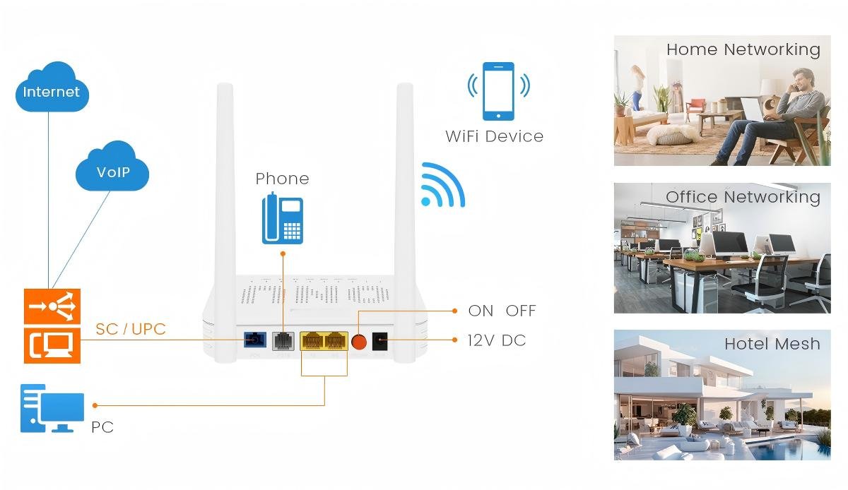 Equipped with a diverse range of triple-play features, suitable for various settings such as homes, offices, hotels, businesses, campuses, and more.