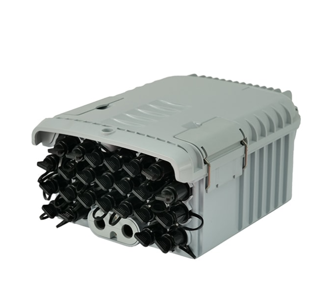 The box is used as a termination point for the feeder cable to connect with drop cable in FTTx network system. The fiber splicing, splitting, and distribution can be done in this box, and to form the optical interconnection point between these networks and the distributed network. It allow the connection to a single optical plug in the customer’s home on demand. and meanwhile it provides solid protection and management for the FTTx network building.