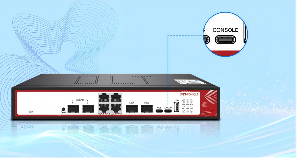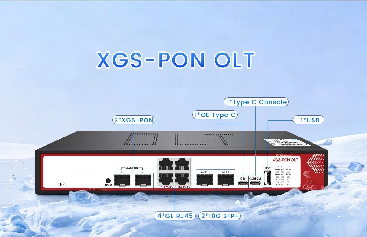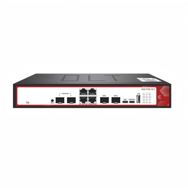 T02 is a box type XGs-PON/XG-PON OLT. The system has good stability and high reliability. Supports multiple management methods such as CL, WEB, and SNMP. The product provides 2*XGS-PON/XG-PON ports, 4*GE RJ45, 1*GE type-C uplink portsand 2*10G SFP+ Slots. Users can quickly deploy, configure, and monitor the device via the cloud management, greatly reducing labor and time costs during netvwork construction. Suitable for sparsely populated and budget limittfed areas, smart industrial parks commercial buildings, FTTR, etc. Each PON port supports a maximum split ratio of 1:128, supports up to 256 users, 1U height isconvenient for installation and maintenance. It is an excellent choice for operators to migrate from GPON to 10G PON.