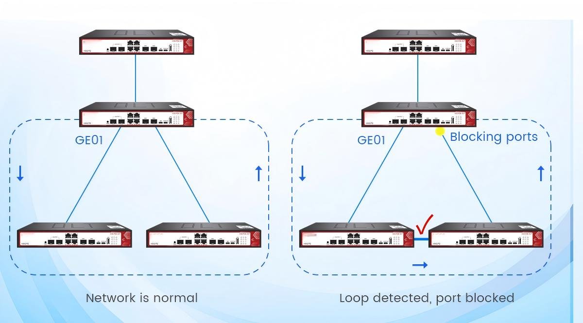 2. When the loop in the network is released, the port automatically returns from a blocked state to a normal state, and the port resumes normal communication.