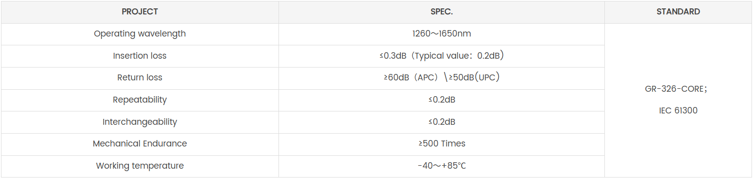 - Photoelectric automatic control system SC to SC Single Mode (GJYXFJH) Pactch Cord Optical performance index of connector