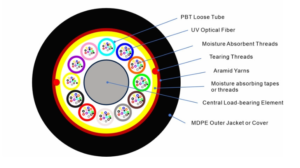 144F*2.15Tube+3.5CSM+6.4PE+WST+Ripcord+7*3300AramidYarn+16mm±0.5MDPE