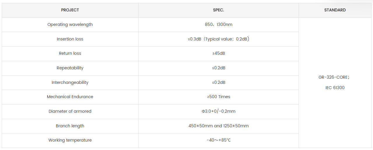 Bundle pigtails, or pigtail bundles and multi-core connectors, have only one end with a connector, and the other is a broken optical fiber end. They are connected to other optical fiber cores by fusion and often appear in optical fiber terminal boxes. They are used to connect optical cables and terminal equipment.