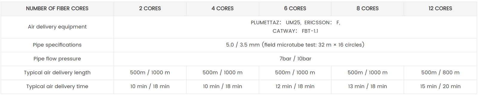 Air-blown micro cables use air-blown laying methods to connect optical branch points and user access points. The optical cable has good mechanical and temperature properties, high tensile strength guaranteed by fiberglass, good flexibility, easy construction, and low cost..