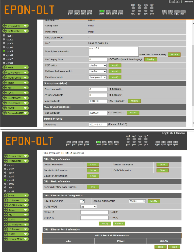 BT-P6104H(BT-PON Olt 4Pon Ports Epon Olt Fibra Bt-P6104h Sfp Px20++ Epon Solution Price) EPON OLT is a 1U standard rack-mounted equipment complying with IEEE802.3ah, YD / T 1475-2006 and CTC 2.0、2.1 and 3.0 .It has flexible, easy to deploy, small size, high performance and other characteristics. The product is particularly suitable for residential broadband fiber access (FTTx), telephone and television “triple play”, the power consumption information collection, video surveillance, networking, private network applications and other applications. Supply 4 PON Ports Supply 4 pcs RJ45 Uplink Port Supply 4 SFP slots(Combo) Supporting 256 ONUs under 1:64 splitter ratio. Supporting various types of management mode, such as out-band, in-band, CLI 、WEB and EMS based on development interface. Typical Power 50W