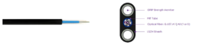 The typical Flat Drop Optical cable Includes Central Tubes with optical fibre(s), Glass FRP as the strength members, a LSZH Sheath is extruded outside.