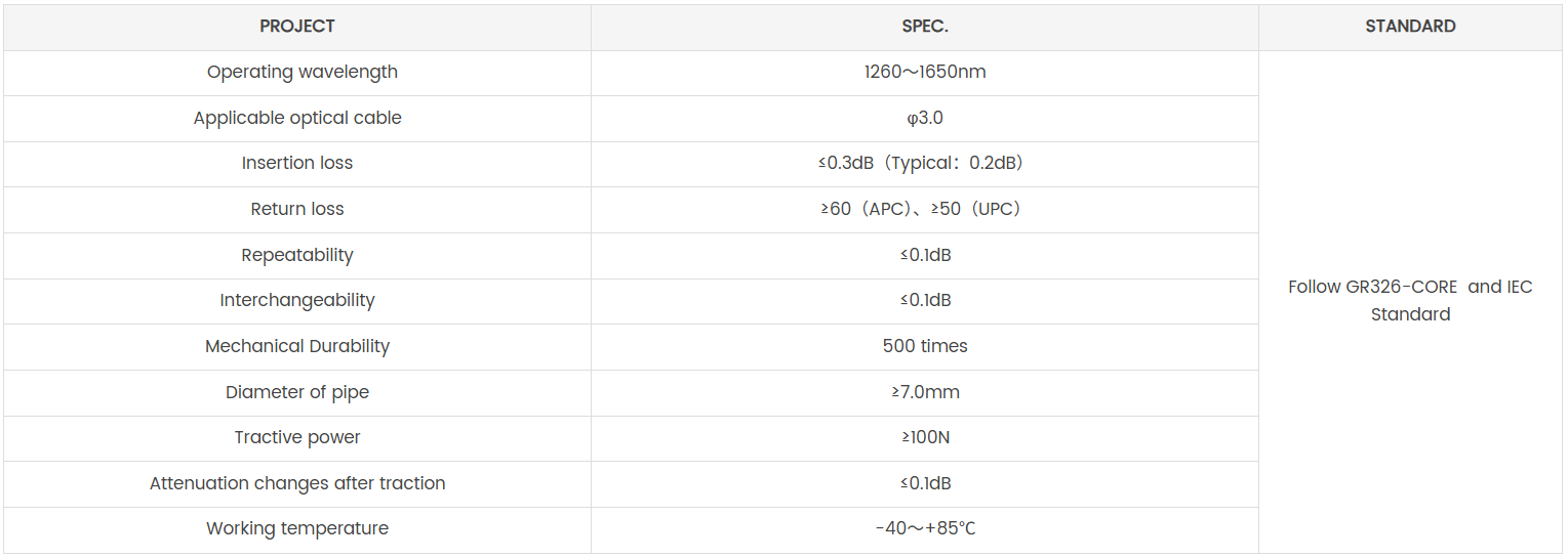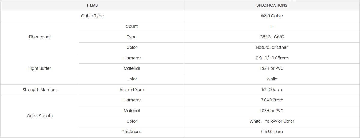 - They are mainly used as wiring cables in the user access section of fiber to the home (FTTH) and other optical access (FTTx) networks. Can be matched connectors for pre-assembling or field assembling.