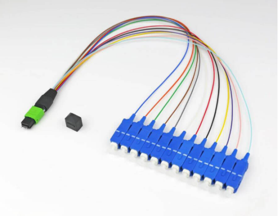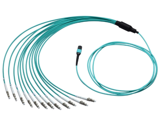 Breakout cable is used to split 12-core MPO/MTP connector terminated on trunk cable into simplex or duplex connectors. MPO/MTP connector is connected with trunk cable, while simplex or duplex connector on the other side can provide a different fan-out length which is convenient for device connection.