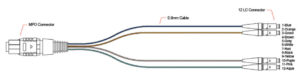 The MPO Fan-out Patch cord are multi-fiber ribbon cable rated for OM4 40GB Multimode applications. They offer up to 12 times the density when compared to the same-size SC connector and utilize a push-pull design for easy mating and removal. The MPO Fan-out Patch cord w/ pins to LC Fan-out cable assemblies are factory terminated and tested and provide significant installation time savings. The MPO to LC fan-out is ideal for making connections within a rack or wall-mounted fiber enclosures. Carefiber’s MPO products are fully compatible with US Conec MTP products.