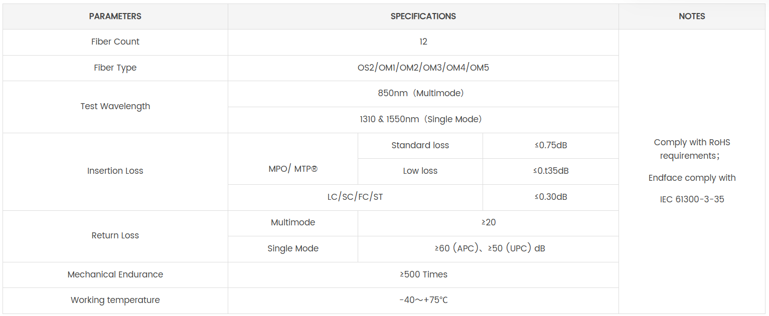 - Fully compatible with US Conec MTP products