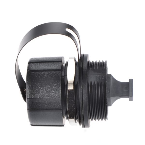 It uses dual-layer rubber gaskets and threaded coupling for a watertight seal.