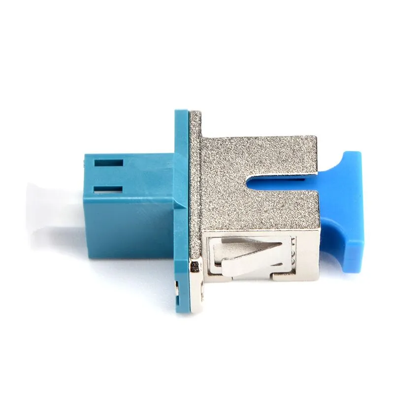 The SC side uses metal for strength and durability, while the LC side uses plastic to keep the adapter lightweight and cost-effective.