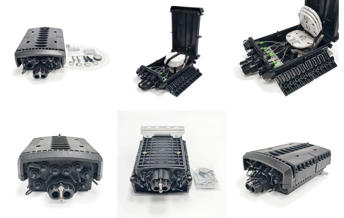 Inside the closure, configurations can be customized to accommodate optical spliApplicationtters or pigtails based on client requirements. It is available in multiple port options, including 2-port, 4-port, and 8-port configurations. Designed for versatile installation, the closure can be mounted on poles, underground, aerial, or pedestals, making it suitable for a wide range of deployment scenarios.