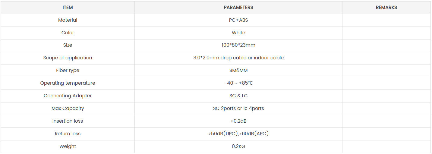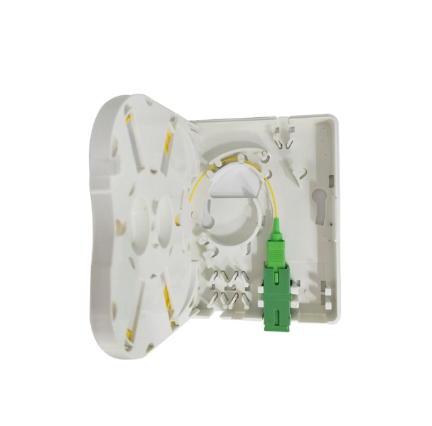 This type of fiber rosette box can hold one subscriber. It is used as a termination point for the drop cable to connect with the patch cable in the FTTH indoor application. It integrates fiber splicing, termination, storage, and cable connection in one solid protection box.