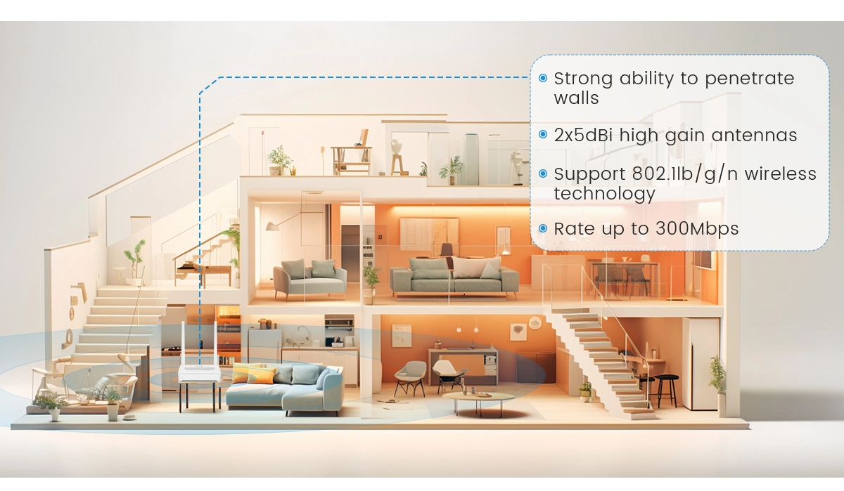 Standard: Adopts 802.11n wireless standard and provides stable 2.4GHz band wireless connection.