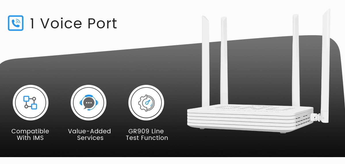 X411DWC integrates fixed-line telephone communication function. Users only need to connect the fixed-line telephone line to the voice interface of the optical modem to realize the call function, without the need to install additional traditional fixed-line telephone lines, thus simplifying the communication line layout of the home or office.