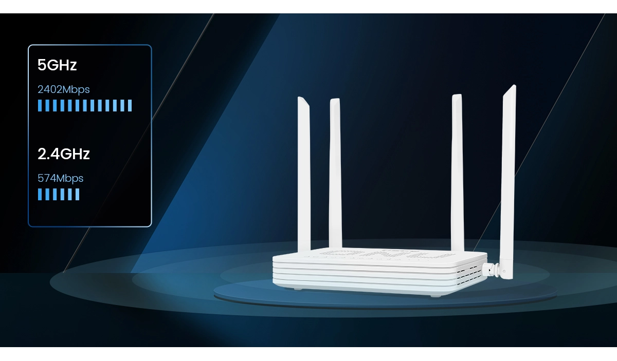 Equipped with 4x5dBi enhanced antennas, using scientific component layout to achieve excellent signal penetration and complete signal coverage in a wide area. Supports both 2.4GHz and 5GHz frequency bands.
